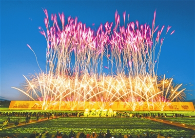 2月16日除夕夜,在只有河南·戏剧幻城景区的百亩麦田之上,数道绚烂的烟火绚丽绽放,点燃新春年味。 聂冬晗 关洋洋 摄