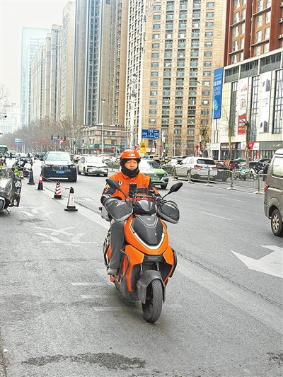 郑州市金水区东风路上,胡辉正骑着电动自行车送外卖。