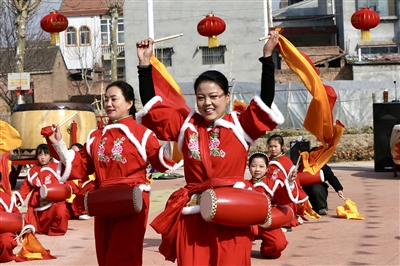 滑县锦和街道董西北村,队员们全力备战新春民俗展演。 本报全媒体记者 王铮 摄