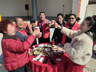 2月17日,孟州市槐树乡卫山村的村民们欢聚一堂,同吃团圆饭。 受访者供图