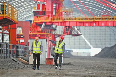 2月17日,农历大年初一,走进位于义马市的河南豫西煤炭储备基地,项目部施工人员卜玉款和黄明生头戴安全帽、身着工装,穿梭在项目现场各个点位认真巡查。