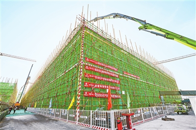 2月21日,位于郑州航空港经济综合实验区的富士康扩产项目一标段建设现场一派繁忙景象。春节期间,施工方中国一冶组织700余名工人坚守一线,全力冲刺建设目标。本报全媒体记者 徐聪 摄