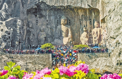 春节假期期间,游客在洛阳龙门石窟景区参观游览,领略千年石刻造像艺术的独特魅力。张怡熙 摄
