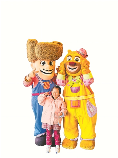 《熊出没》系列玩偶在奥斯卡龙湖金融岛影城与观众互动。受访者供图