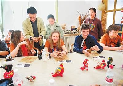 2月20日,参加“2026美国青少年匹克球人文交流中国行”的美国师生走进浚县古城体验制作泥咕咕。 赵永强 摄