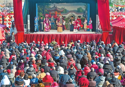 农历正月初三,在南阳市文化馆广场,该市豫剧团和曲剧团为戏曲爱好者送上精彩的文化表演。 崔培林 摄
