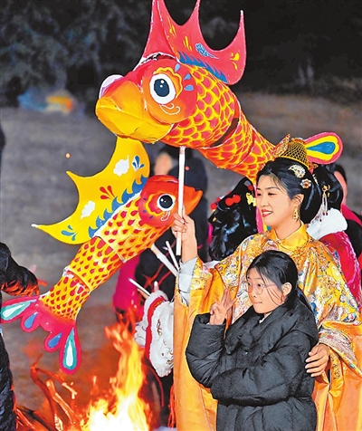 “以前过年看灯,就是走马观花拍拍照。现在不一样了,能和‘财神’击掌,能和‘月老’互动,感觉自己也成了年俗活动的一部分。”游客张志宇深有感触地说,“这是大型实景剧本杀,这种沉浸式体验让年味更浓。”