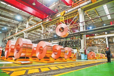 2月24日,中铝洛阳铜加工有限公司生产车间里,工人们正赶制新能源汽车用高强高导铜合金订单。 潘炳郁 摄
