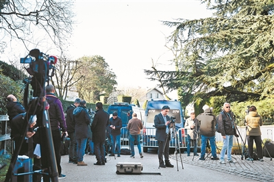 2月26日,记者在瑞士日内瓦阿曼驻日内瓦外交代表机构附近等待。当日,伊朗与美国的第三轮间接谈判在瑞士日内瓦举行。新华社记者 连漪 摄