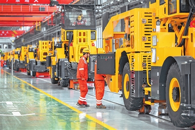 2月27日,马年新春开工伊始,位于新乡的中铁装备设备公司总装车间一片繁忙景象。目前,该公司隧道专用设备生产正如火如荼进行,多款智能型三臂凿岩台车、锚注台车等产品正有序装配。 本报全媒体记者 聂冬晗 摄