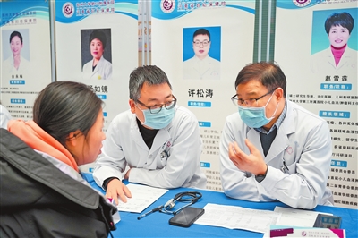 2026年2月28日是第19个国际罕见病日,郑州大学第三附属医院里,专家们正在义诊。 吴昊南 摄