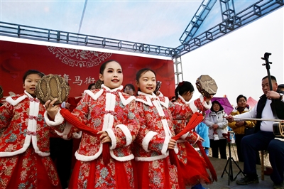 3月1日,农历正月十三,备受瞩目的马街书会正会在宝丰县马街村精彩开幕。图为学生在书会上表演。本报全媒体记者 王铮 摄