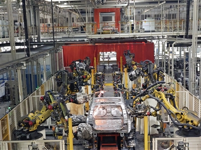 在比亚迪焊装郑州工厂里,仅一个车间内就分布着上千台焊装机器人。