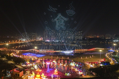当天,无人机春晚以4000架无人机编队表演为核心,把传统舞台艺术与无人机天幕秀深度融合,在夜空中点亮贾湖文明、字圣故里、食品名城的城市IP,搭配舞台上的璀璨灯光和演出,将沙澧大地的夜空装扮得耀眼夺目。