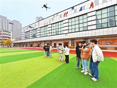 郑州技师学院微短剧影视学院的学生正在进行无人机拍摄课程实训。受访者供图