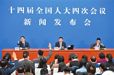 3月4日,十四届全国人大四次会议在北京人民大会堂举行新闻发布会。大会发言人娄勤俭就大会议程和人大工作相关问题回答中外记者提问。 新华社记者 李鑫 摄