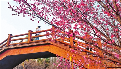 3月3日,洛阳市隋唐城遗址植物园梅园内,梅花进入盛花期,吸引游客赏花游园,感受春色美景。 张光辉 摄