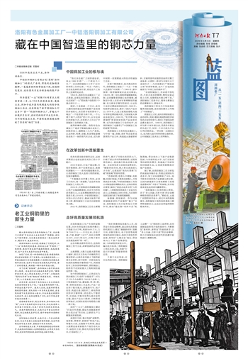 披荆斩棘终成路。洛阳有色金属加工厂建成了集铜及铜合金加工、铝镁材加工、铜精炼三大生产系统,以及科研、检测、动能、机加等配套辅助系统于一体的现代化企业,成为新中国第一家规模最大的综合性铜加工企业。