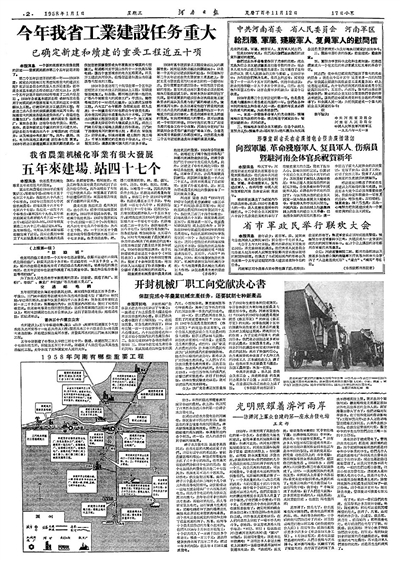 1958年1月1日,《河南日报》二版报道洛阳有色金属加工厂等建设情况。