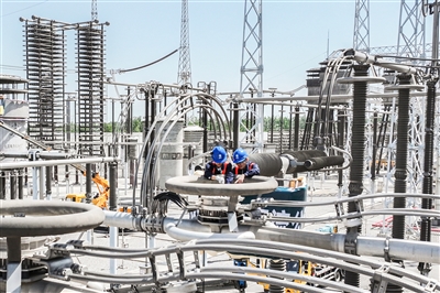河南郑州中州换流站的运检人员认真开展站内设备检修工作。张鑫 摄