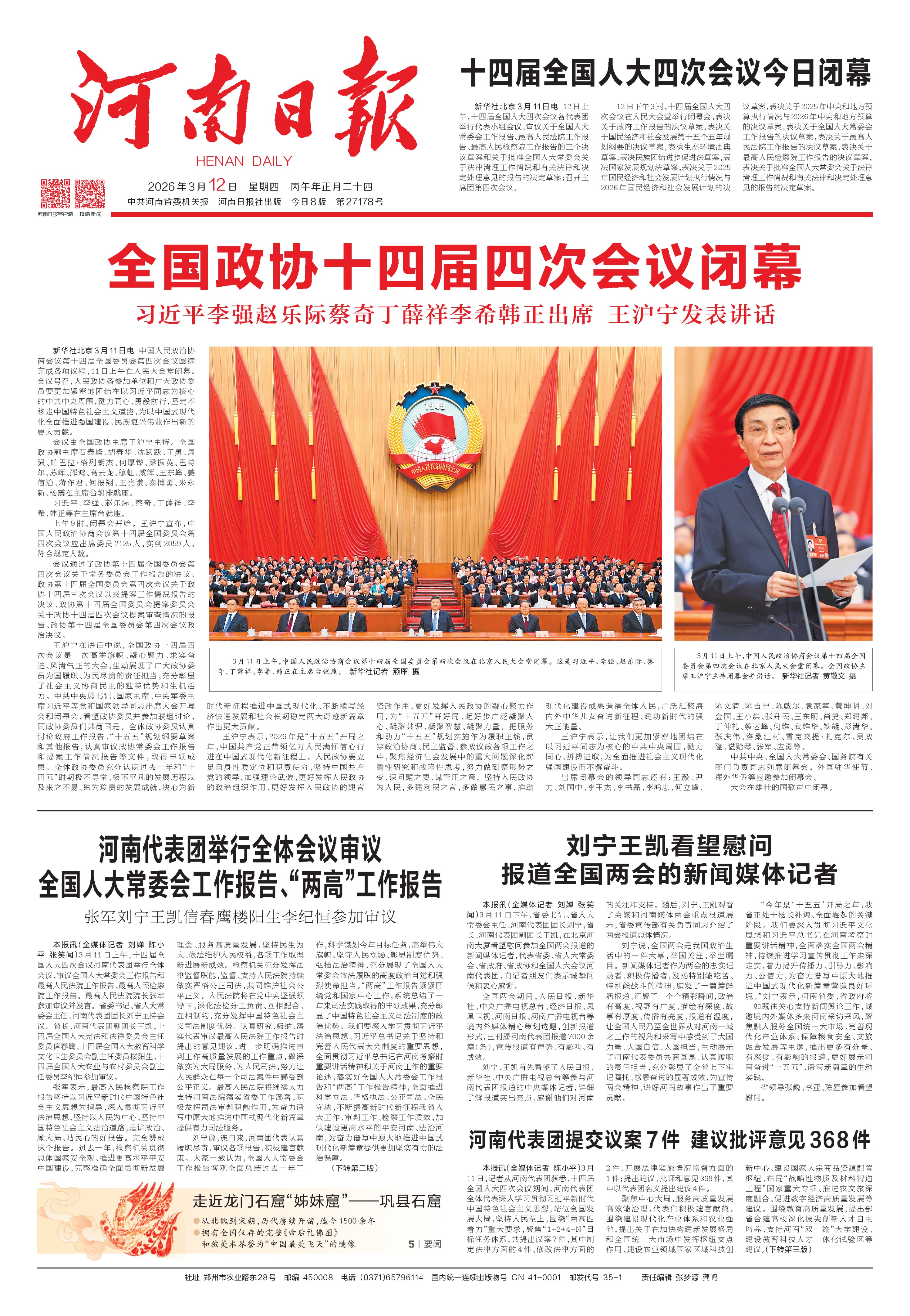 河南代表团举行全体会议审议全国人大常委会工作报告、“两高”工作报告