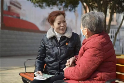 马静与社区居民交谈,了解群众需求,倾听群众心声。 受访者供图