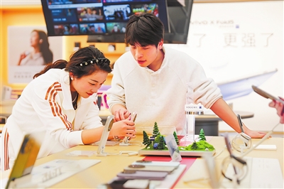 武陟县新田360广场的一家手机店,顾客在选购新款手机。日前,武陟县加大消费品“以旧换新”支持力度,动员企业持续开展汽车、家电、数码和智能产品相关展销活动。王琳锋 摄