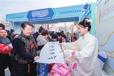 亳都·新象活动中,中原消费金融志愿者将金融消保书法作品赠送给消费者。尹睿芊 摄