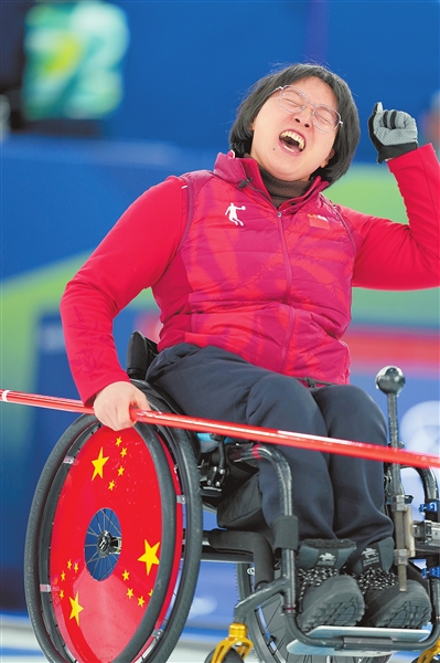 王蒙在本届冬残奥会和队友杨金桥携手出战,勇夺轮椅冰壶混合双人项目金牌,此项目为冬残奥会新设项目,这枚金牌具有历史意义。