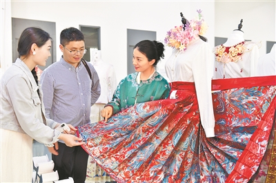 记者了解到,曹县目前已推出月华裙、凤尾裙等多款汉服款式,在色彩、纹样、图案等设计元素上积极融入国际语境,探索一条“文化+时尚+产业”的出海路径。