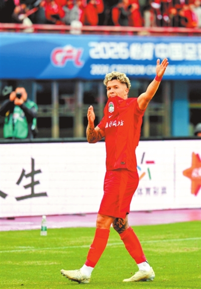 3月15日,2026赛季中超联赛迎来河南足球俱乐部彩陶坊队首个主场赛事。球队主场作战,以2∶1战胜云南玉昆队,斩获新赛季两连胜。本报全媒体记者 邓放 摄