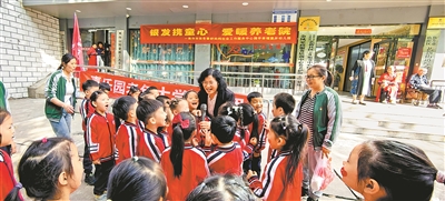 张冬香好妈妈社会工作服务中心与幸福童年幼儿园开展敬老志愿服务。