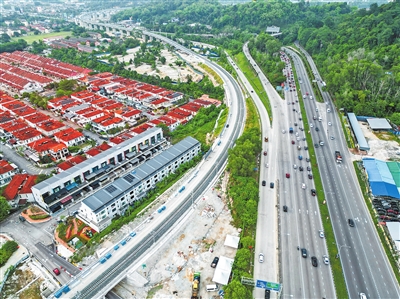 3月16日,中国企业承建的马来西亚东海岸铁路(马东铁)项目哥打巴鲁至鹅唛段轨道正式铺通。图为马来西亚雪兰莪州鹅唛车站附近的马东铁项目轨道(无人机照片)。新华社记者 陈泽国 摄