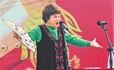 刘兰芳在2023年马街书会现场说书。本报资料图片
