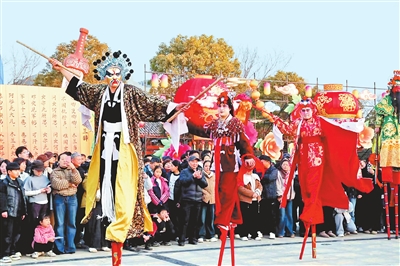 商丘火神台庙会高跷表演。张硕 摄
