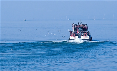 在淅川县宋岗码头,鸥鸟翩跹,游客们乐享生态美景。该区域位于国家一级水源保护区外,已成为“中原看海”的知名打卡地。崔培林 摄
