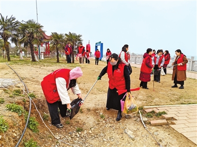 淅川县水利局组建巾帼护河队开展护河净滩活动。王娟 摄