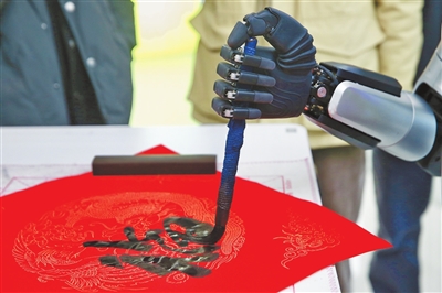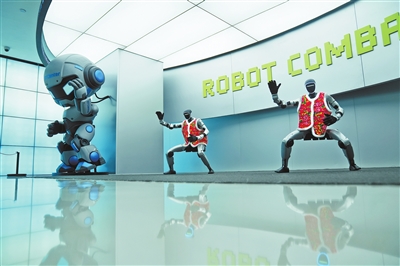 机器人“大青龙”身高超过1.8米,吸引众多观众。