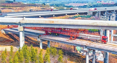 3月22日,在位于洛阳市伊滨区的郑州至洛阳高速公路项目建设现场,工人正架设箱梁。作为省重点建设项目,郑洛高速公路起点位于郑州市西南绕城高速公路,终点位于洛阳市二广高速公路,全长99公里。目前,该项目洛阳境内箱梁架设已进入收尾阶段,土方工程已完成94.5%。 张怡熙 张若含 摄