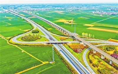 3月25日,一列高铁列车驶过郑万高铁与二广高速公路平行段。南阳市紧紧围绕高质量建设全国性综合交通枢纽城市,在交通运输基础设施项目建设上持续发力,打造互联互通、高效便捷的路网体系。