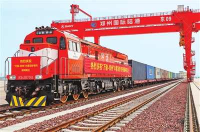 3月28日,一列满载木薯淀粉的东盟国际班列顺利抵达郑州国际陆港东作业区。当日,郑州东盟木薯淀粉集散中心正式揭牌成立,进一步密切了中原地区与东盟的经贸往来。 本报全媒体记者 邓放 摄