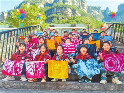 中牟县紫圆实验小学学生在太行山大峡谷基地参加艺术实践活动