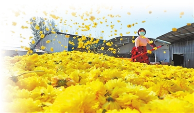 温县怀菊花种植专业合作社农户在晾晒怀菊花。 徐宏星 摄