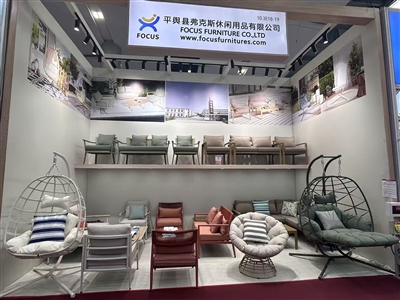平舆县弗克斯休闲用品有限公司携多款户外休闲家具参加商品展会。 李杰 摄