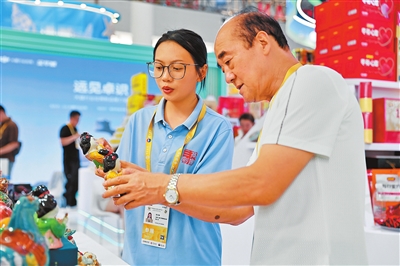 “彩色的钻石第一次见!”“你们这是游戏联名款吗?”……在河南馆入口处,消博会“新面孔”河南天璇半导体科技有限责任公司展台前簇拥着不少年轻消费者。“看到现场反应这么好,我们知道来对了。”该公司销售经理宋永波告诉记者,希望在消博会上找到更多创意合作伙伴,打造符合“Z世代”审美的潮流新品,深度链接年轻消费群体。