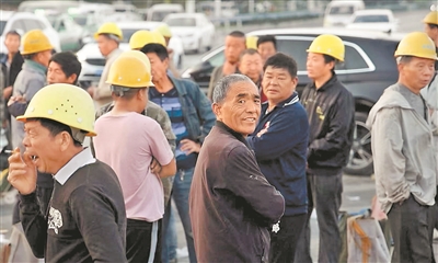 也有部分大龄农民工选择留下。他们为了“抢活”,主动压低日薪,让本就低迷的市场行情雪上加霜。“比如市场价一天190元,60岁以上人只要170元。”一位钢筋工说。