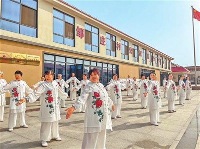 邹庄村村民在打八段锦,乐享幸福新生活。 李金杭 摄