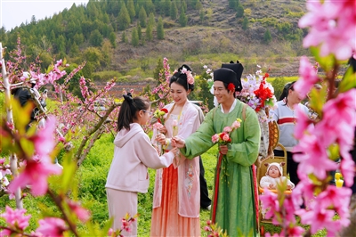 淅川县金河镇袁家千亩桃林绘就乡村振兴春日画卷。 本报全媒体记者 李栀子 摄