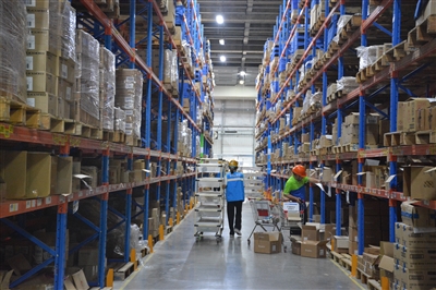 唯品会、菜鸟、京东等大仓相继落户,郑州新郑综保区已成为国内海淘化妆品重要集散地。图为员工在菜鸟航空港国际保税仓盘点快件。