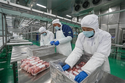 南洋优鲜超级工厂日处理200吨进口牛肉的国际标准牛肉加工生产线已开始生产。本版图片均由本报全媒体记者 徐聪 摄